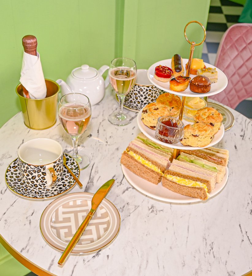 A selection of finger sandwiches, scones with clotted cream & jam, cakes & fancies and a pot of tea £25